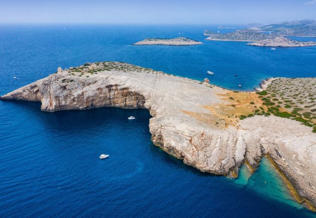 Das Kornati-Archipel, oft als die „Kronjuwelen“ der Adria bezeichnet, ist ein faszinierendes Labyrinth aus 89 Inseln, Inselchen und Felsen. Jede Perspektive enthüllt eine neue Schönheit, sei es aus der Luft, vom Meer oder von den Aussichtspunkten auf den Inseln. Zum Nationalpark erklärt im Jahr 1980, umfasst dieses Schutzgebiet 220 Quadratkilometer, von denen 75 % unter den Wellen liegen. Die steilen Küstenklippen von Kornati, die zum offenen Meer hin ausgerichtet sind, bieten einen Lebensraum für seltene Arten und machen es zur einzigartigsten Inselgruppe im Mittelmeer.
