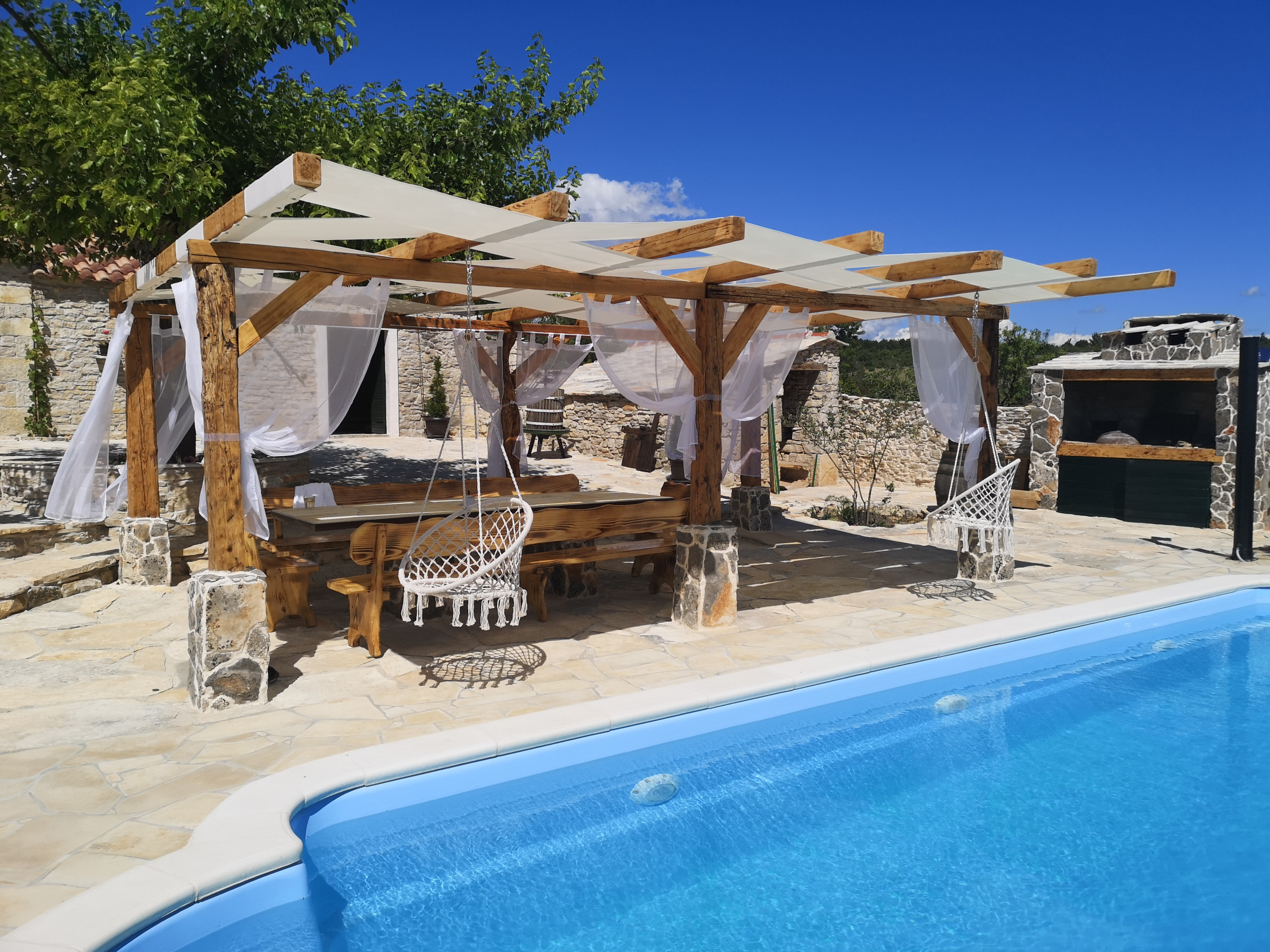 Lokaler Charme, tolle Aussichten und ein großer Innenhof mit privatem Pool. Dieses wunderbare, neu renovierte Ferienhaus befindet sich in der Nähe von Benkovac, im Hinterland von Zadar, genannt Ravni Kotari. Diese Region ist bekannt für ihre hochwertigen Weine, Steinproduktion und Landwirtschaft. Ihre Unterkunft hat die Authentizität einer typischen alten dalmatinischen Hütte bewahrt. Der umfangreiche Einsatz von authentischem dalmatinischem Stein unterstreicht den zeitlosen Charakter der Villa und ihre Verbindung zu ihrer Umgebung.