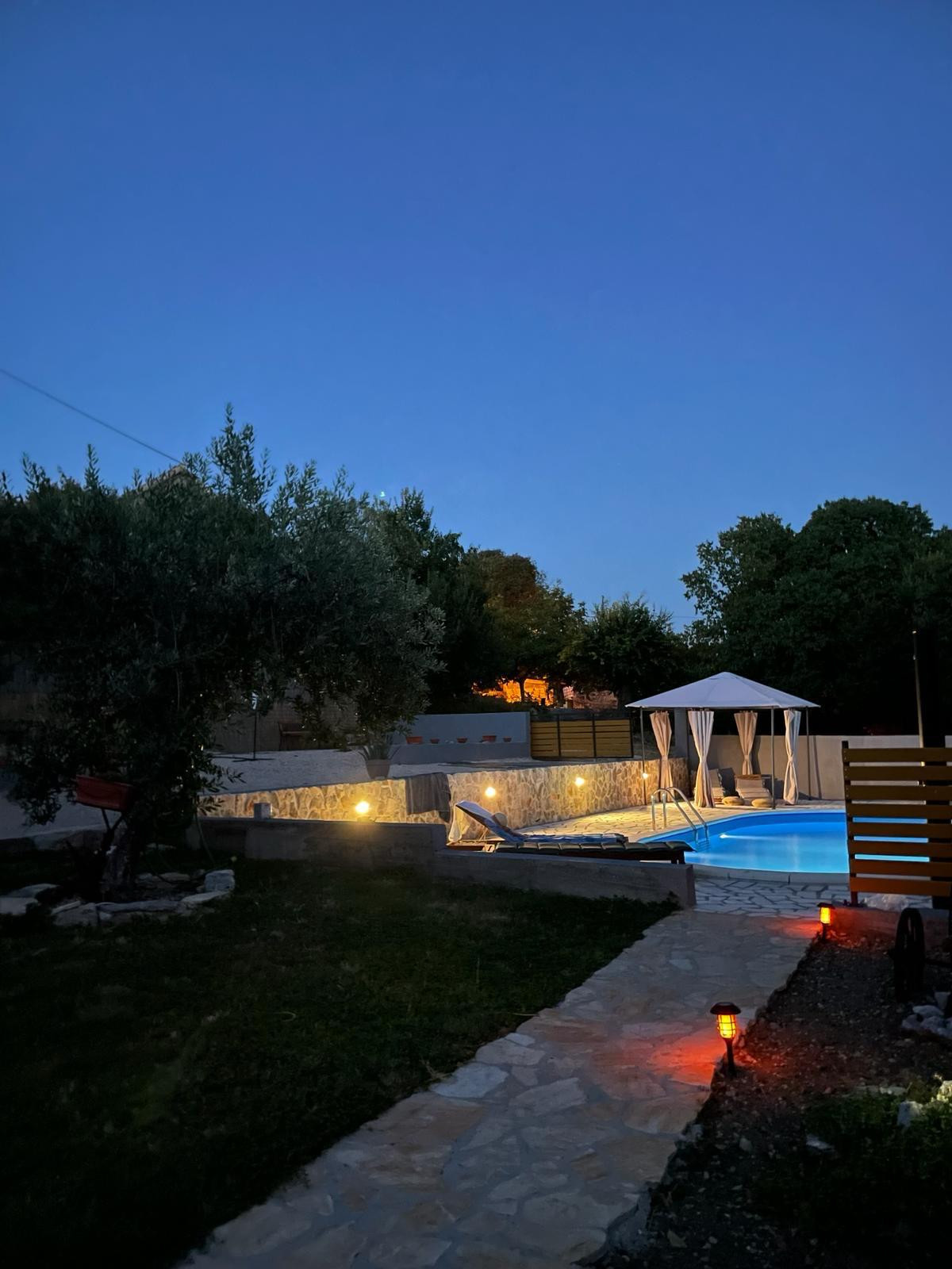 Ausgewählt von My Dalmatia für seine außergewöhnlichen Gastgeber und die Privatsphäre, die dieses großzügige 3000 m2 große Anwesen bietet. Das Innere Ihres Ferienhauses erstreckt sich über zwei Etagen und verfügt über 4 klimatisierte Schlafzimmer, 2 Badezimmer (plus eine zusätzliche Toilette), eine voll ausgestattete offene Küche und einen geschmackvoll eingerichteten Wohn-/Essbereich. Von dort aus haben Sie direkten Zugang zum vollständig eingezäunten Garten, in dem Sie einen großen 50 m2 Pool, ein kleines Steinhaus mit Grilleinrichtungen, zwei überdachte Terrassen, die sich ideal zum Draußenessen eignen, und vieles mehr finden werden. Zur Unterhaltung stehen Ihnen ein Tischtennistisch, Darts, Brettspiele und ein Kinderspielplatz für die Kleinen zur Verfügung. Reichlich privater Parkraum ist für die Gäste gesichert sowie eine schnelle WLAN-Verbindung.