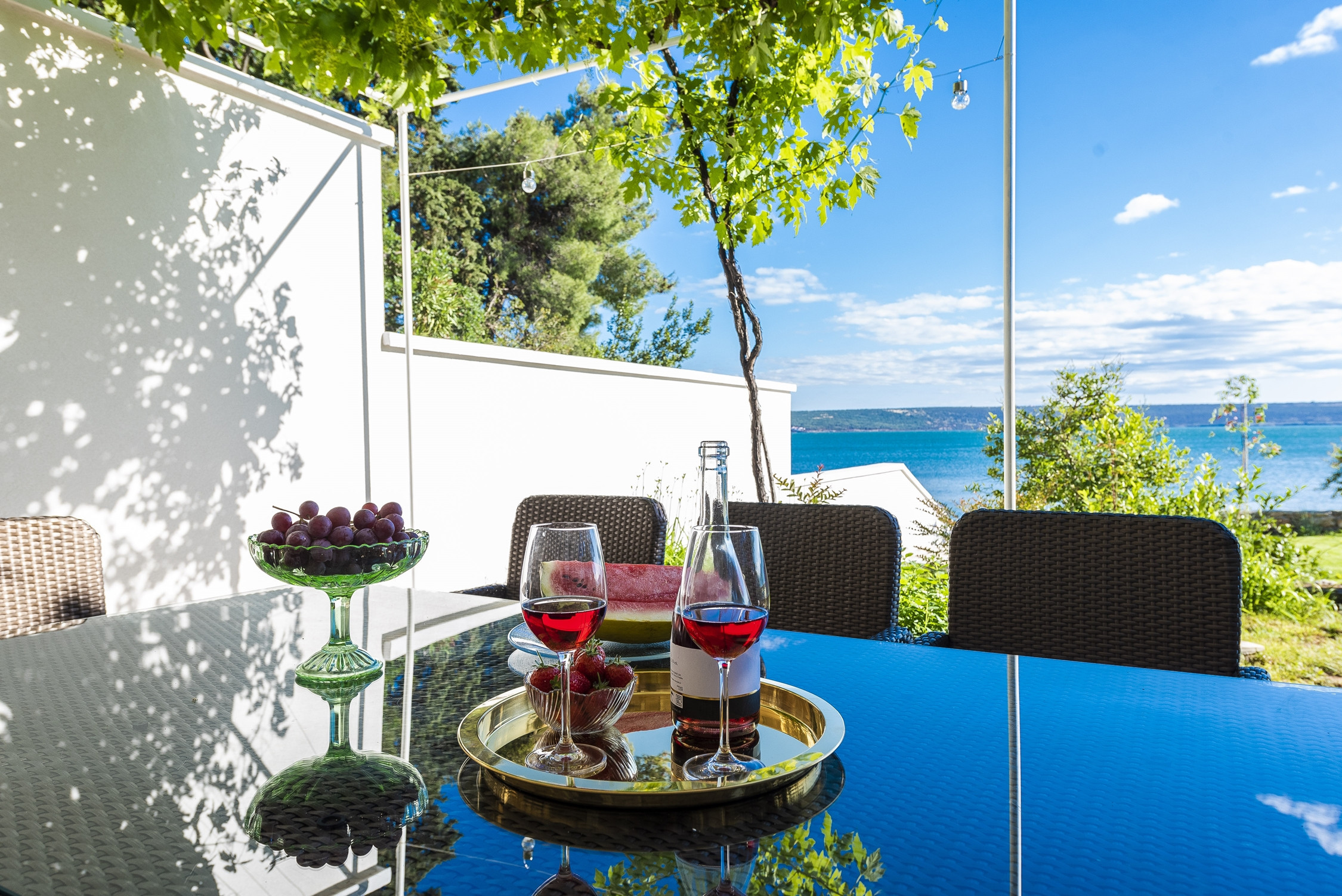Esta elegante villa completamente equipada te deja sin aliento desde la misma entrada hasta el amplio espacio de estar bien iluminado, decorado en tonos beige elegantes. Un hermoso área de asientos se extiende hasta una cocina de planta abierta completamente equipada y tiene acceso directo a la terraza espaciosa con vista al mar. Allí encontrarás tu piscina infinity privada, un patio increíble con un encantador conjunto de sala de estar, un televisor de pantalla plana y mucho mobiliario exterior. Ofreciendo vistas ininterrumpidas del Mar Adriático, este es simplemente un lugar perfecto para relajarse y disfrutar de la compañía de tu familia y amigos. Este nivel también cuenta con una habitación elegante con su propio baño adjunto.