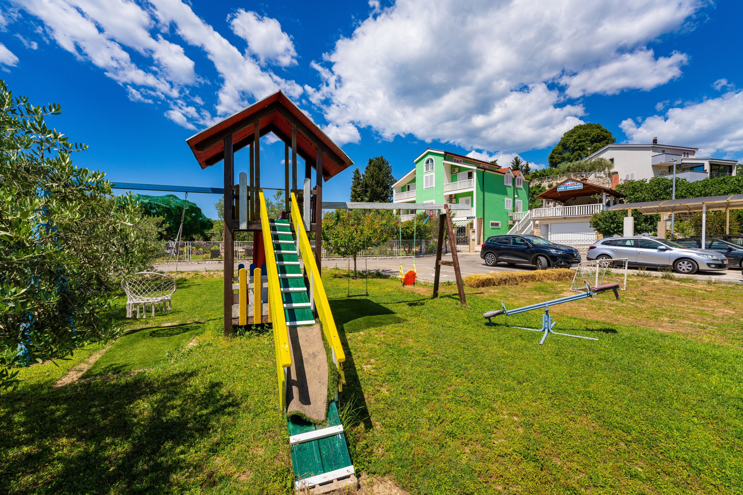Un gran jardín vallado se encuentra en el área frente a la casa. Allí puedes nadar en la piscina, jugar al fútbol mini, tenis de mesa o disfrutar preparando una barbacoa con tus amigos y familia. Tienes a tu disposición una gran terraza cubierta con mesa de comedor, así como bicicletas y canoas proporcionadas por el anfitrión. Para que te sientas como en casa, tu anfitrión organizará una cena de bienvenida, sin costo adicional (válido para estancias de 1 semana o más). ¡Visitado personalmente por My Dalmatia, nos encantó la hospitalidad!