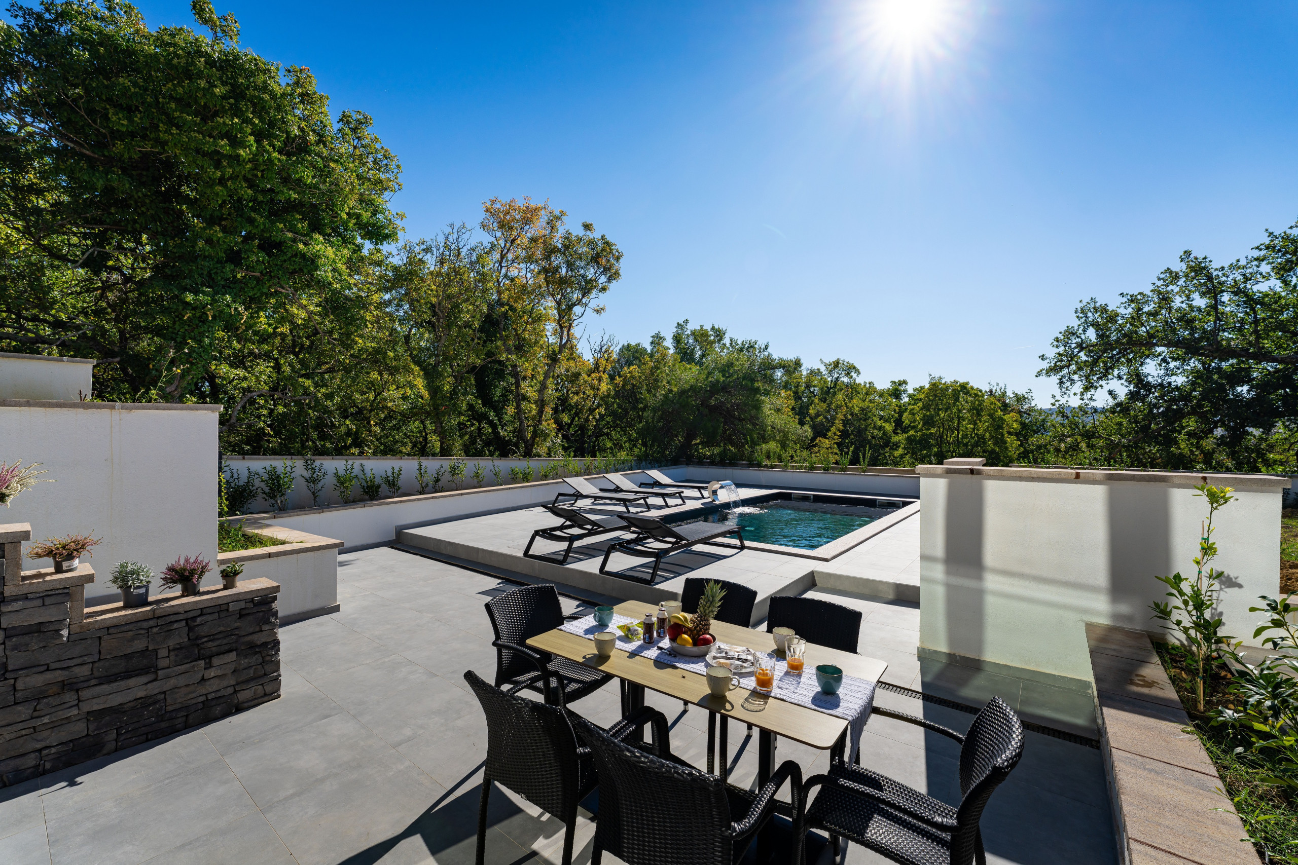 Villa Senti con piscina privada climatizada es una villa lujosa de nueva construcción, espaciosa y elegantemente diseñada, que ofrece un confort excepcional para grupos de hasta 14 huéspedes.
