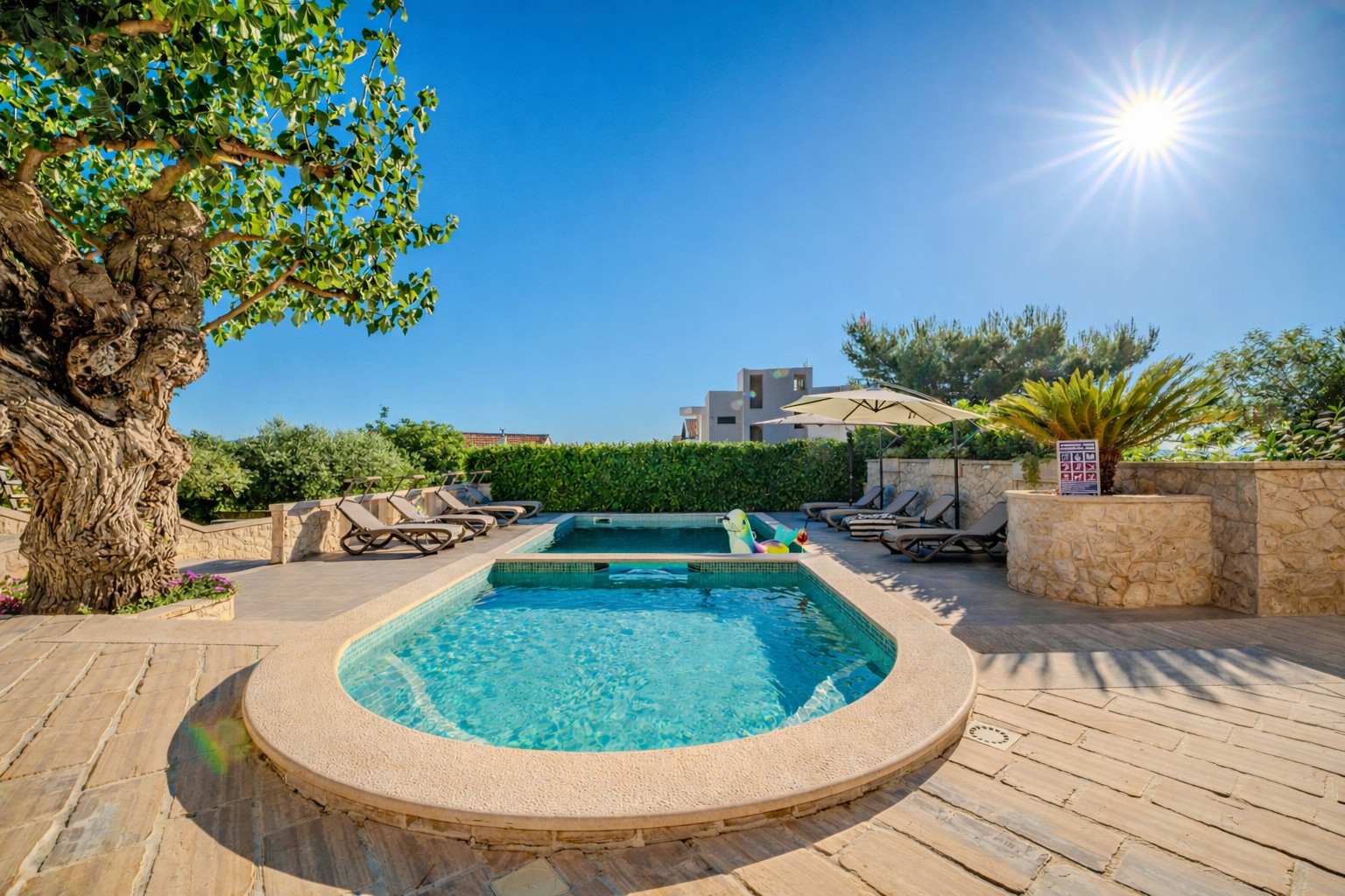 The house is fantastically beautiful and very generously developed. It had everything you need for a holiday as a family. The pool was great and the whole area was well maintained.