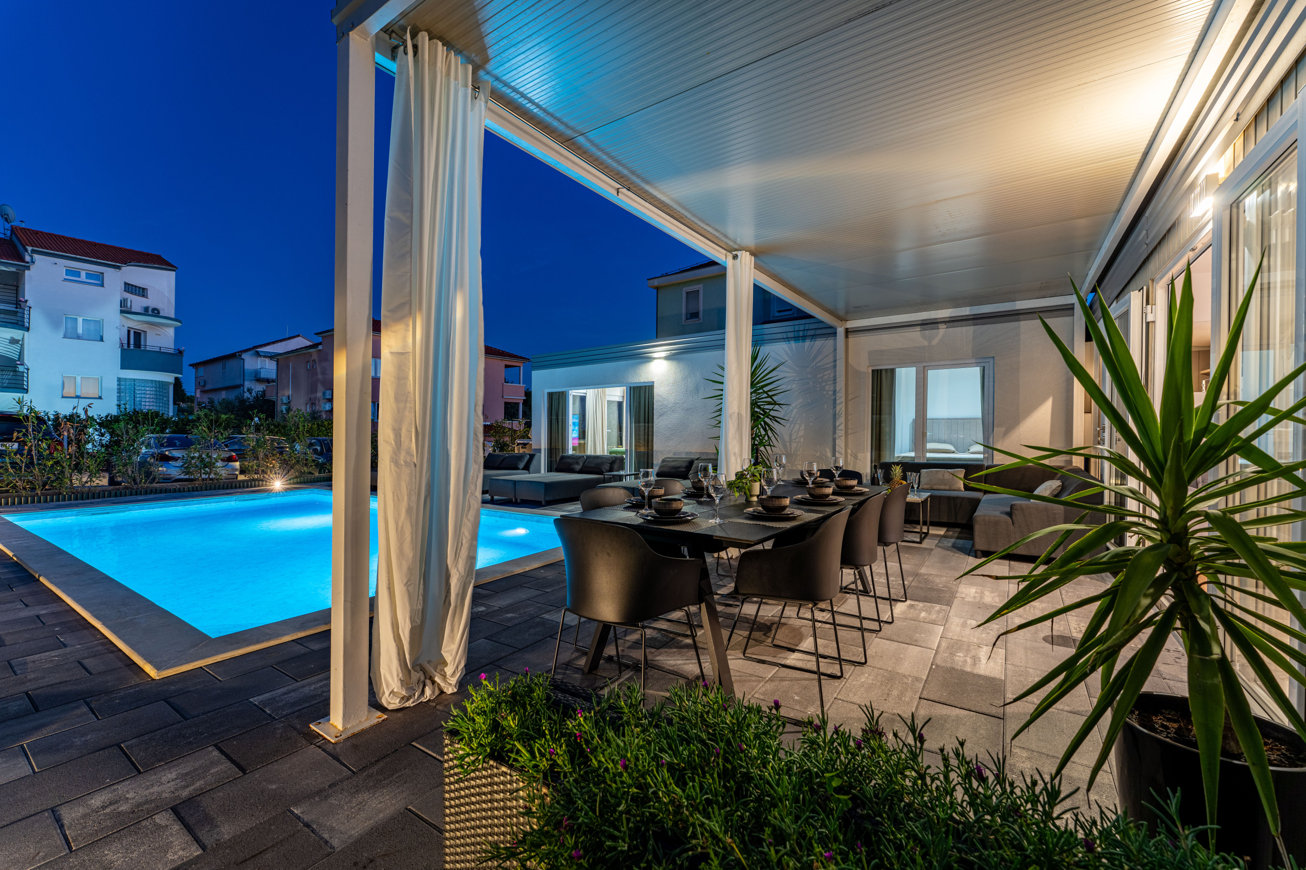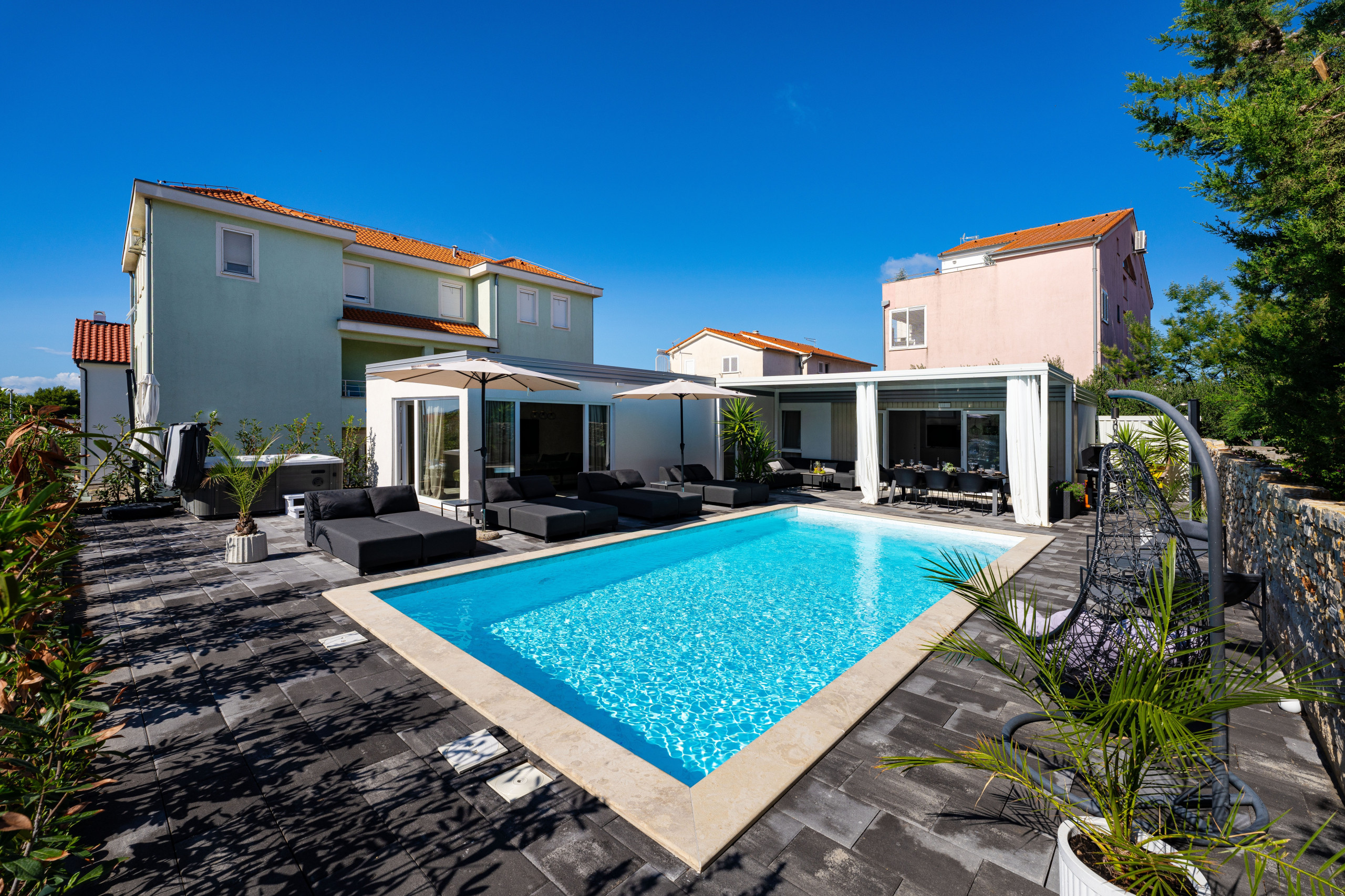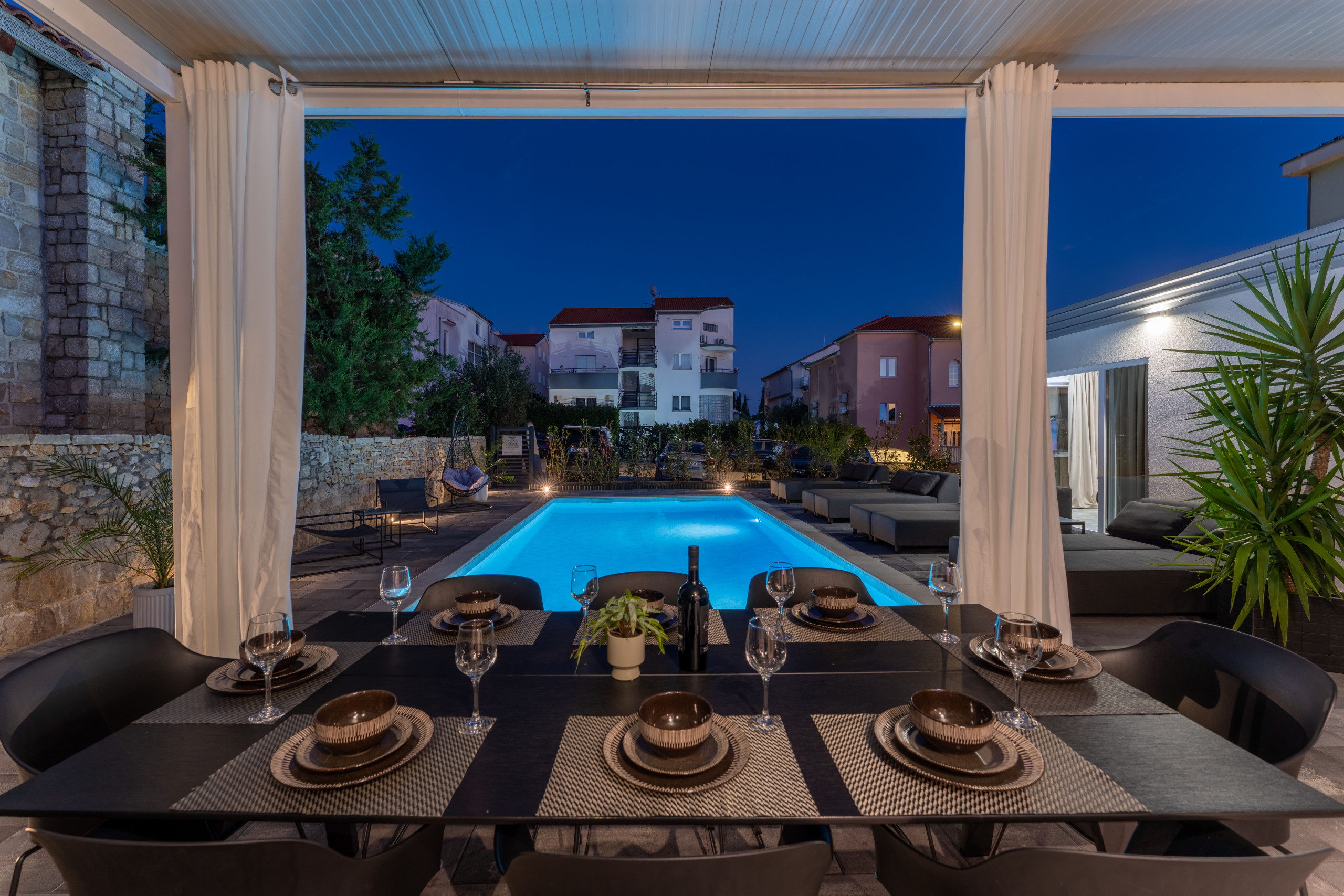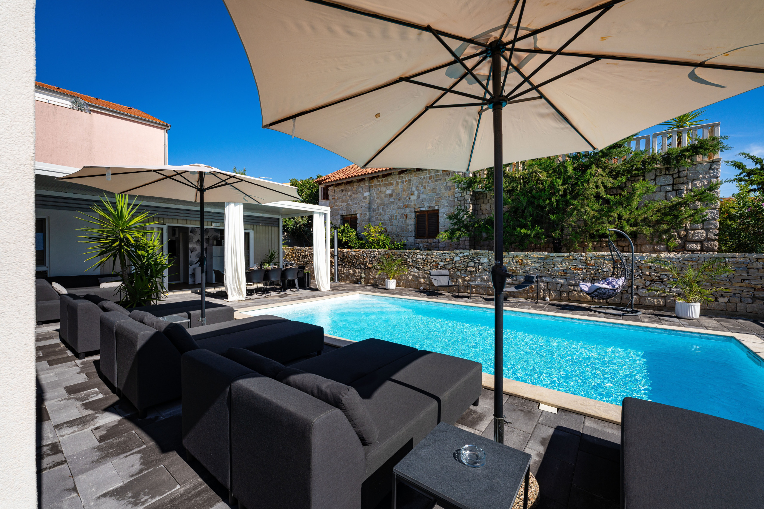 La Villa Tonka avec vue sur mer est une charmante maison de vacances nouvellement construite, située à seulement 250 mètres de la plage la plus proche, dans le pittoresque village côtier de Pakostane. Sélectionnée par My Dalmatia pour son emplacement paisible et sa piscine privée exceptionnelle offrant l'une des vues les plus spectaculaires sur l'Adriatique, cette maison de vacances offre un confort supérieur pour un groupe allant jusqu'à 8 personnes.