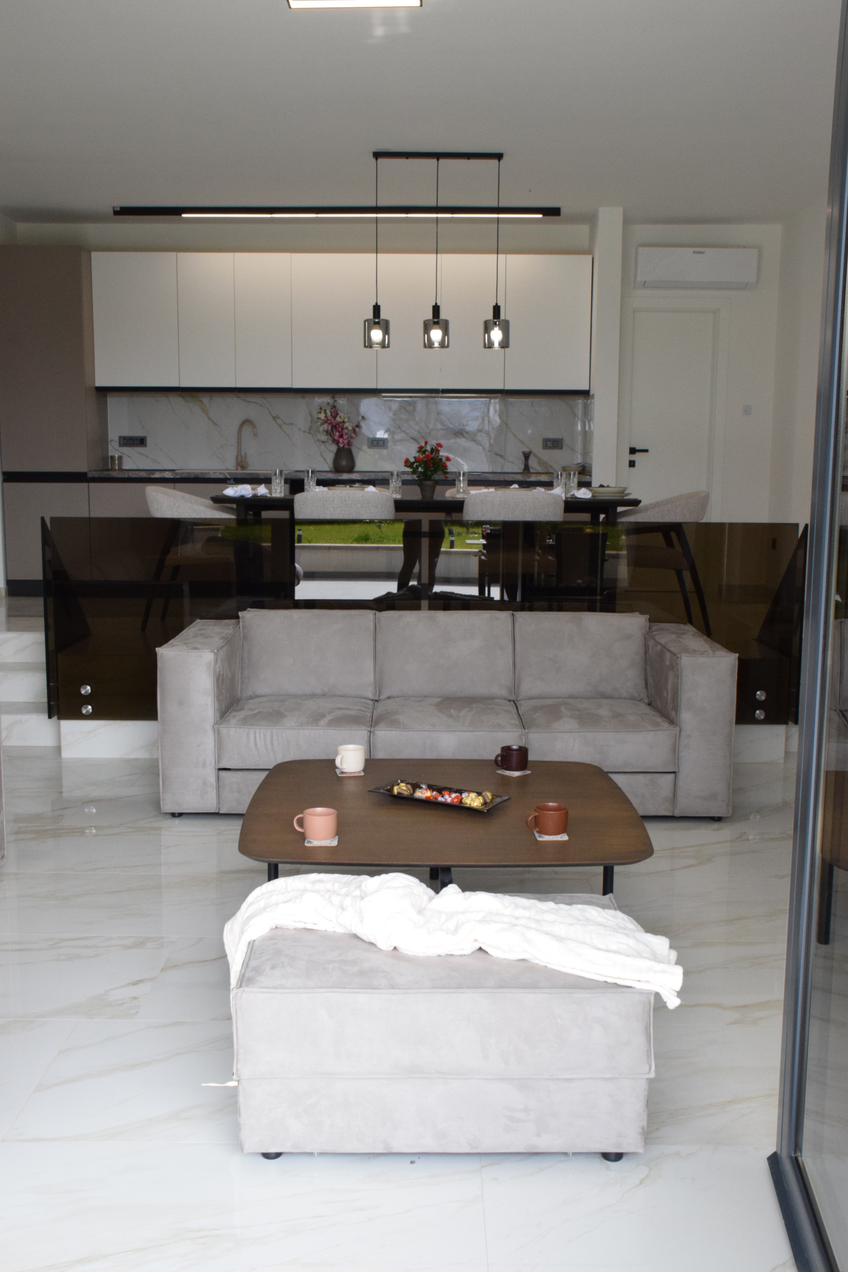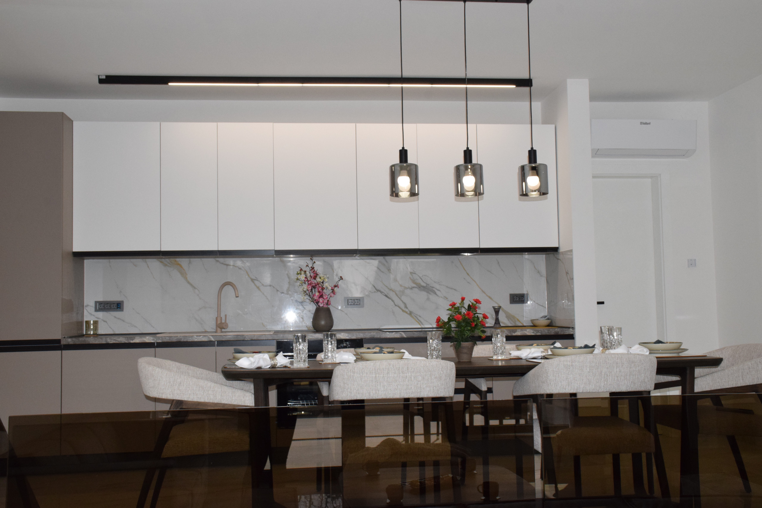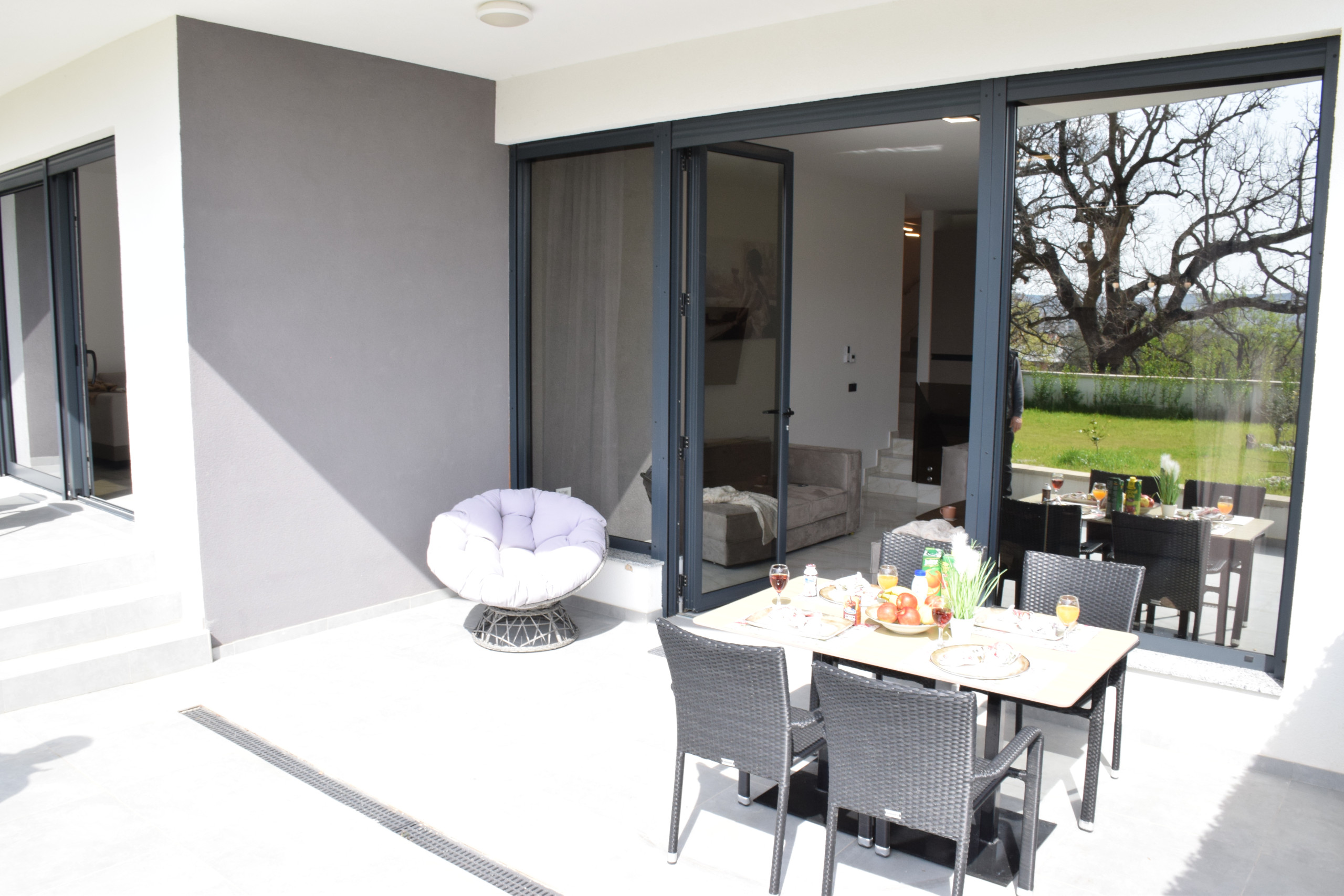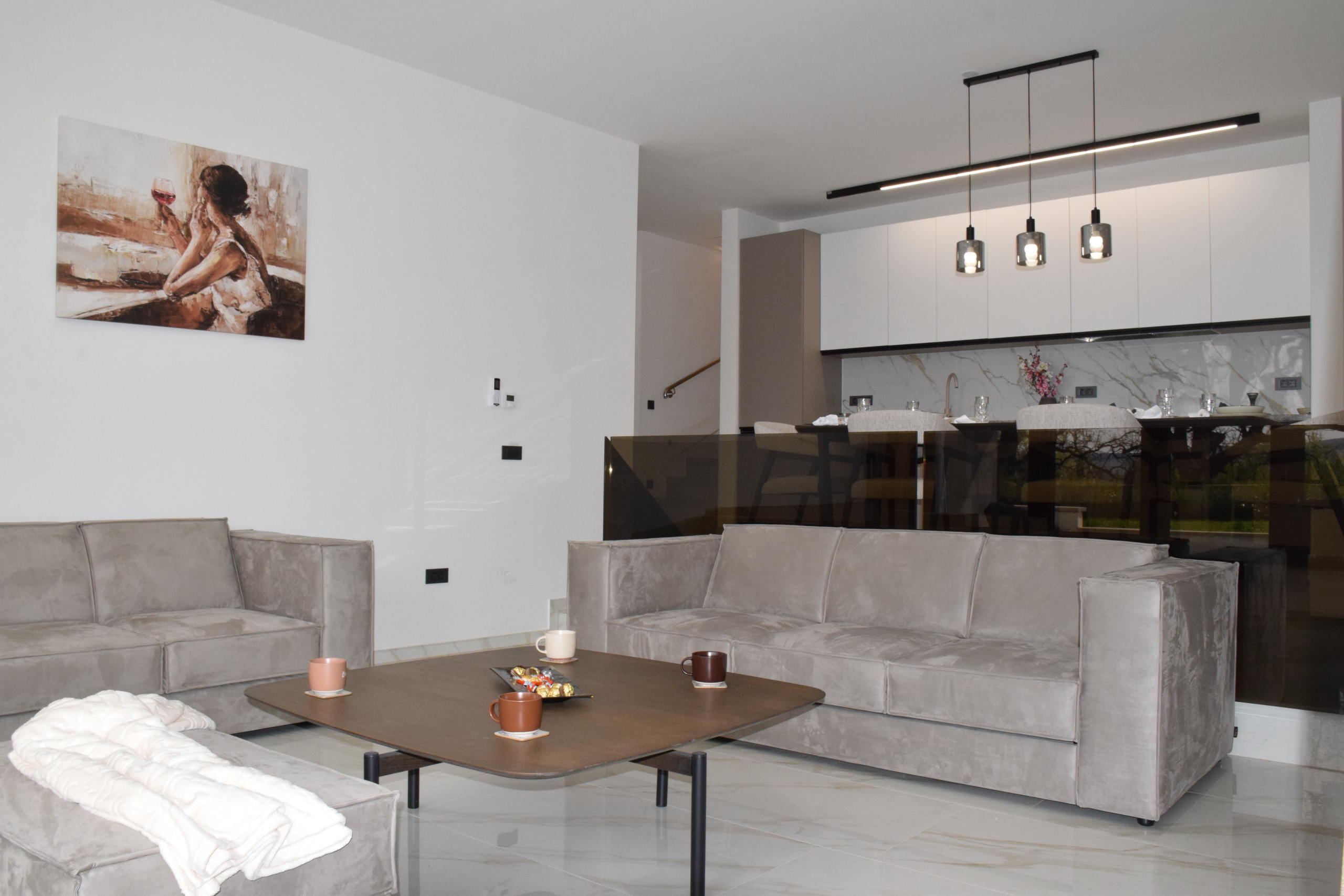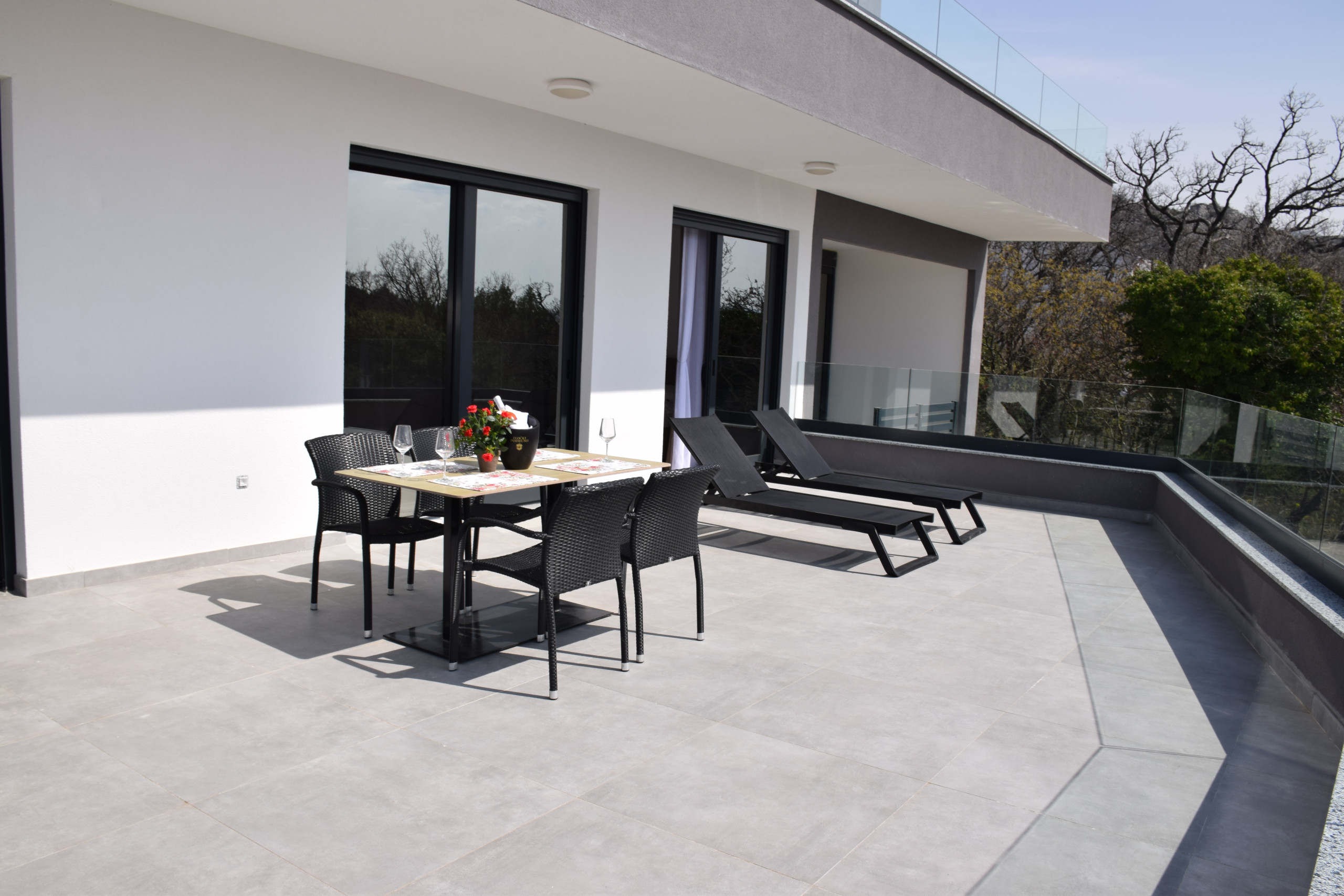Appartamento Senti con piscina riscaldata condivisa è un appartamento di lusso di nuova costruzione, spazioso ed elegantemente progettato, che offre un comfort eccezionale per gruppi fino a 7 ospiti.