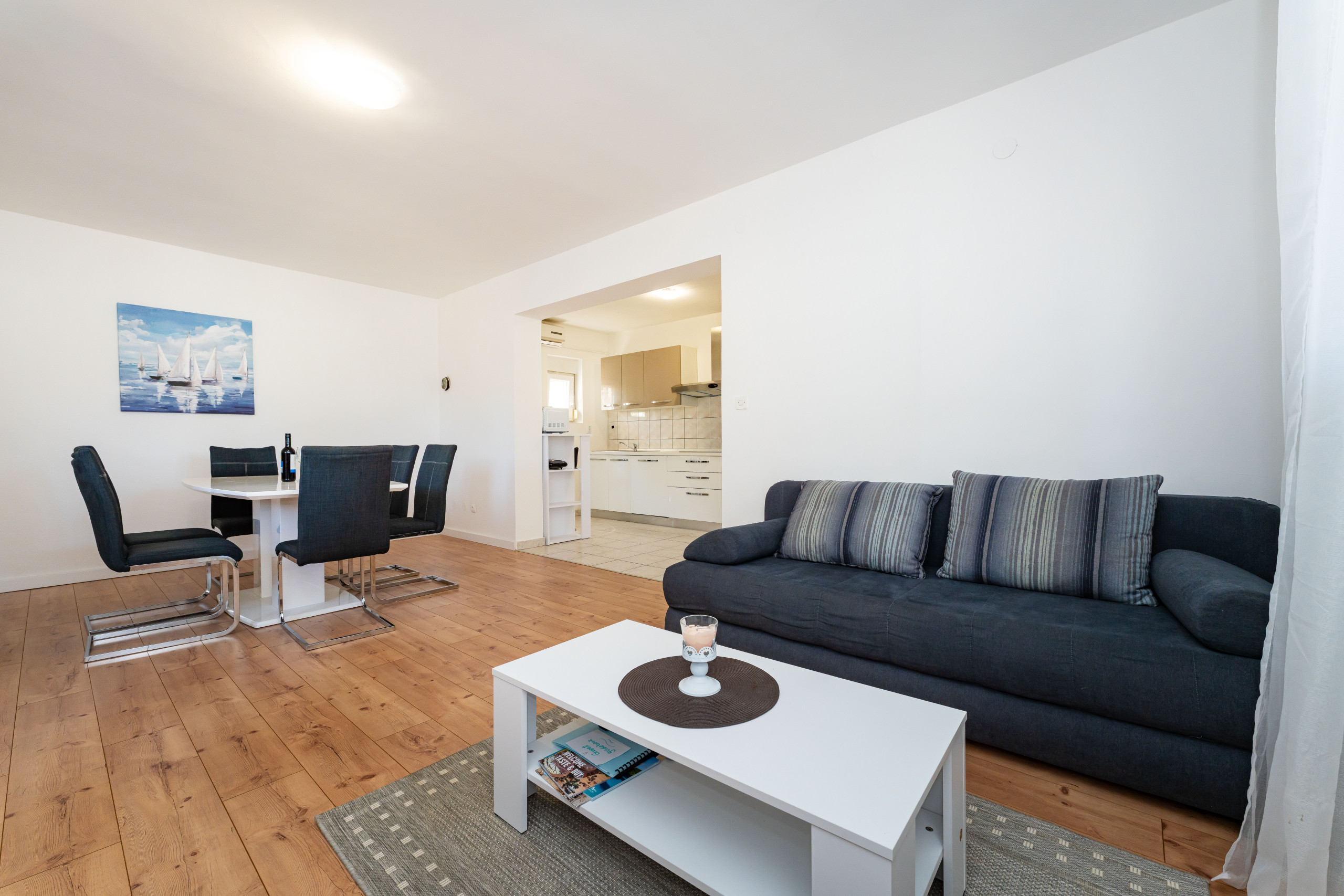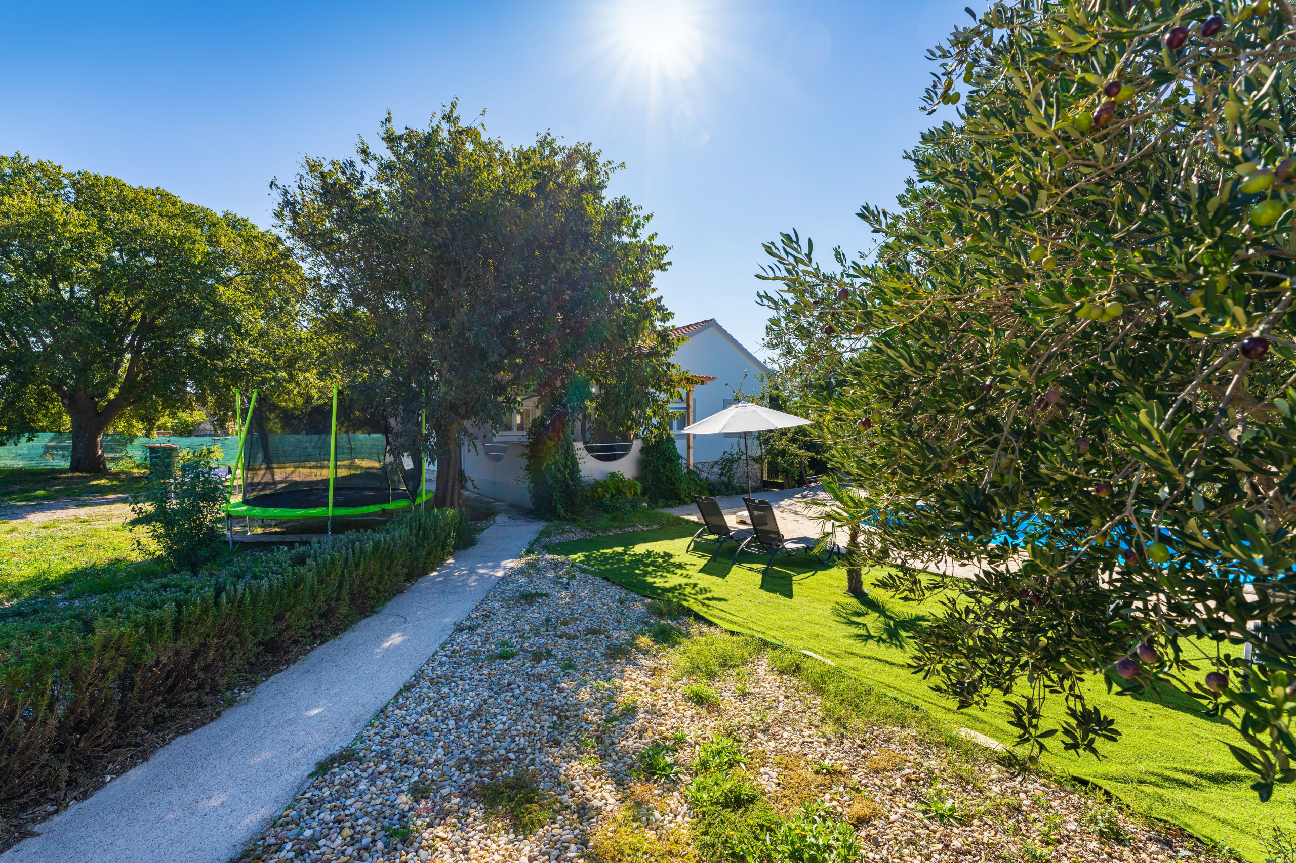 Casa vacanze Emily è composta da un'ampia zona living/pranzo, 3 camere da letto, 2 bagni, una cucina completamente attrezzata a pianta aperta e un'accogliente terrazza coperta che si affaccia sulla piscina, ideale per gustare i pasti all'aperto. L'area esterna include la vostra piscina privata, una vasca idromassaggio, una doccia solare, numerosi lettini prendisole, ombrelloni e un barbecue in pietra. Inoltre, potrete giocare a ping pong e c'è un trampolino per i più piccoli. Durante una visita di My Dalmatia, siamo rimasti particolarmente colpiti dall'ospitalità dei padroni di casa, che vivono accanto e saranno felici di fornirvi frutta e verdura fresca del loro giardino.