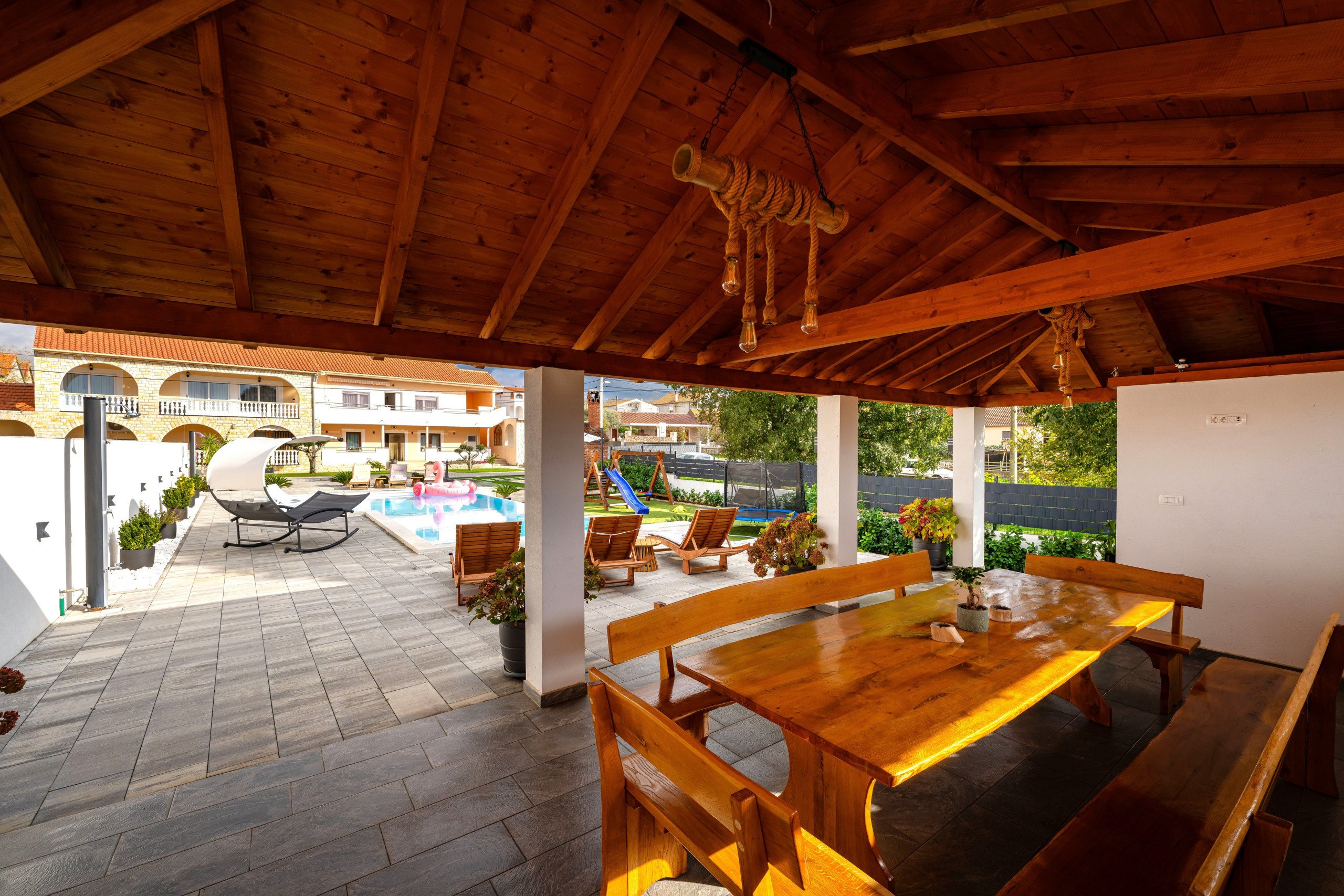 Prywatny basen posiada również mały basen dla dzieci. Twój niesamowity teren zewnętrzny oferuje duży tradycyjny kamienny grill, plac zabaw dla dzieci, urokliwą tawerną wyposażoną w stół jadalny i dodatkową toaletę, 2 prysznice słoneczne, mnóstwo leżaków, meble ogrodowe i wiele więcej.