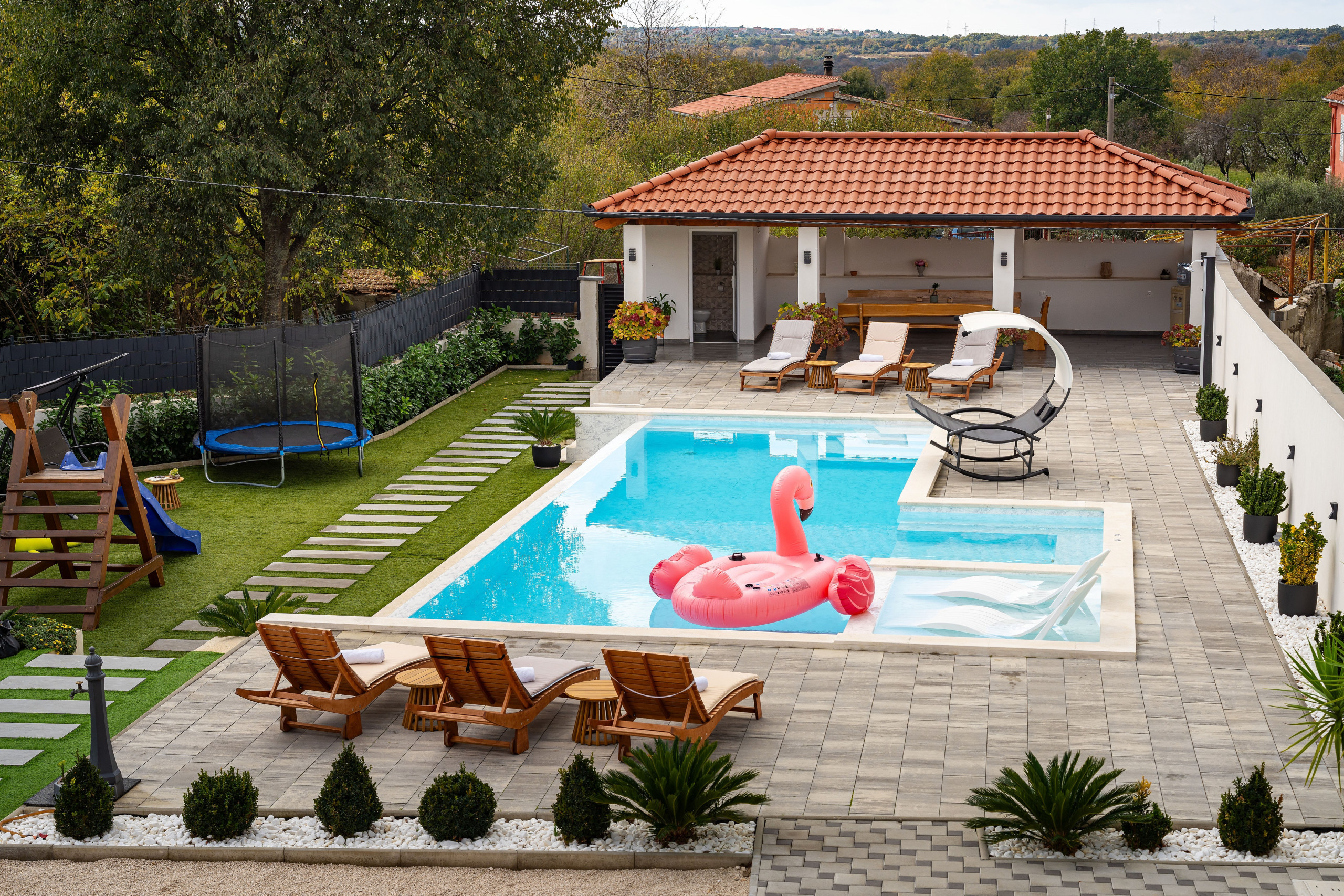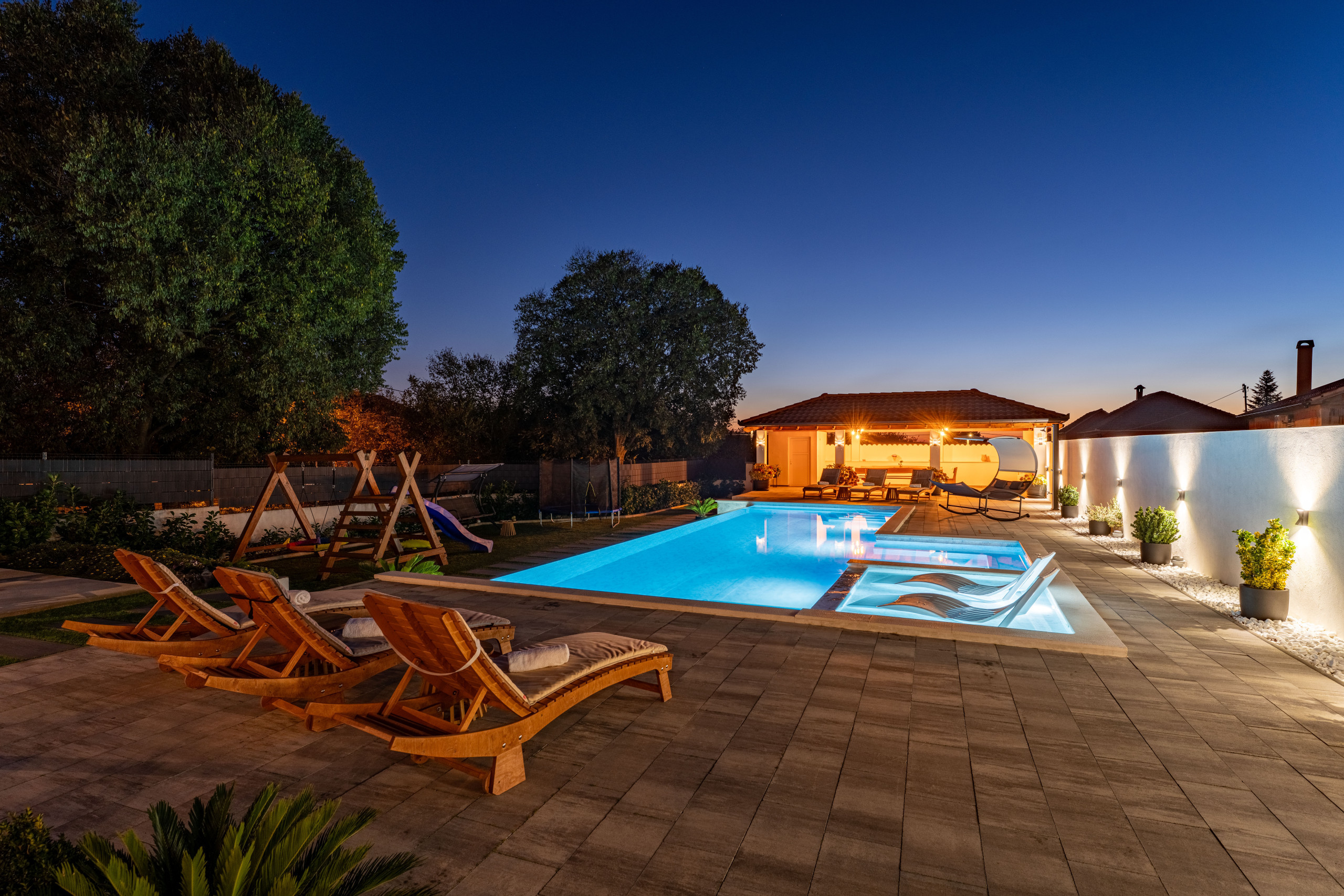 Szukasz przyjaznej dla rodziny nieruchomości wakacyjnej? Ten niesamowity apartament znajduje się w Galovac, spokojnej wiosce zaledwie 10 km od najbliższej plaży. Z pięknym ogrodem wyposażonym w udogodnienia i dużym basenem o powierzchni 60 m², apartament Galleli z prywatnym basenem może wygodnie zakwaterować grupę do 10 gości. Wybrany przez My Dalmatia ze względu na wspaniały teren zewnętrzny i świetnych gospodarzy, którzy sprawią, że poczujesz się jak w domu.