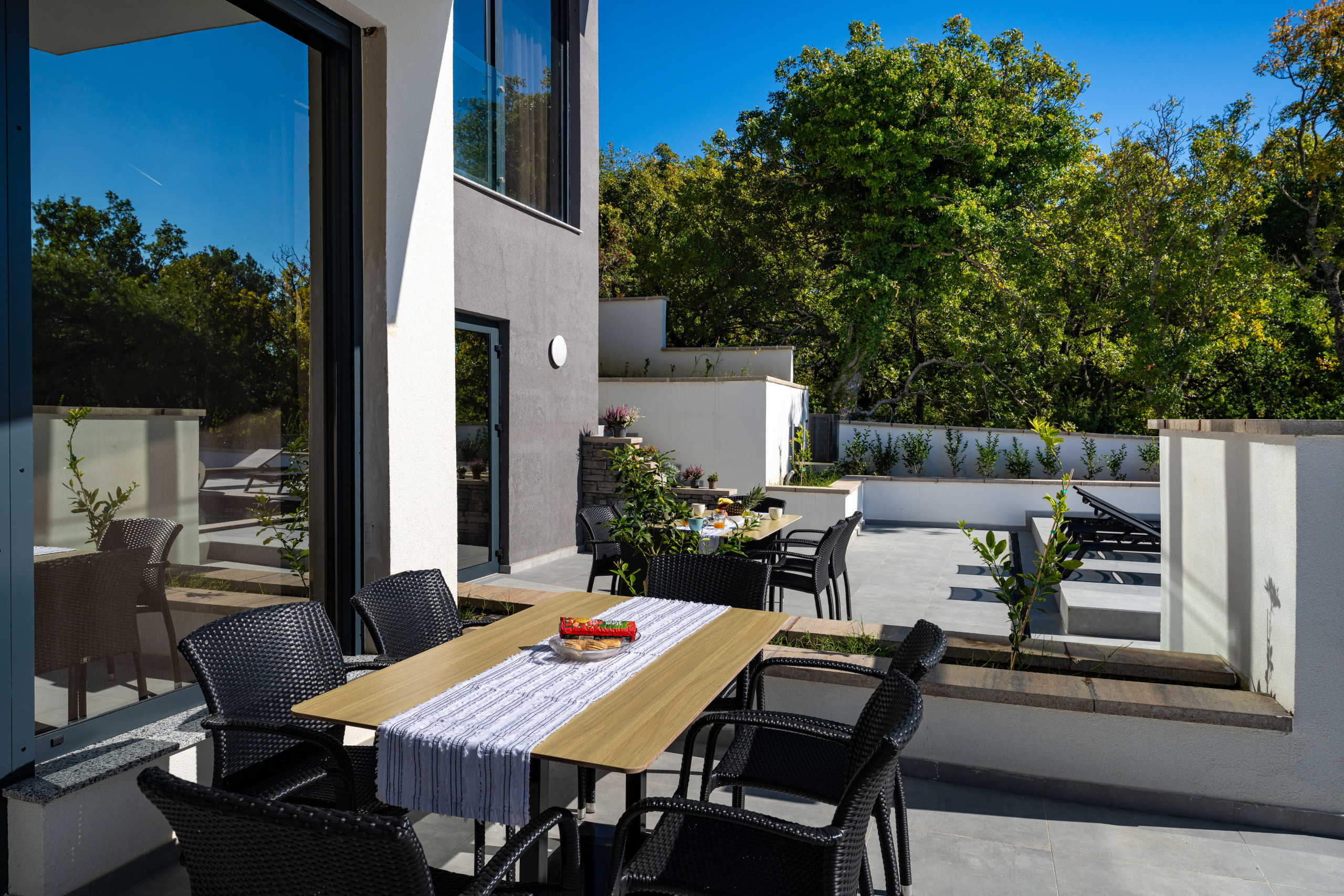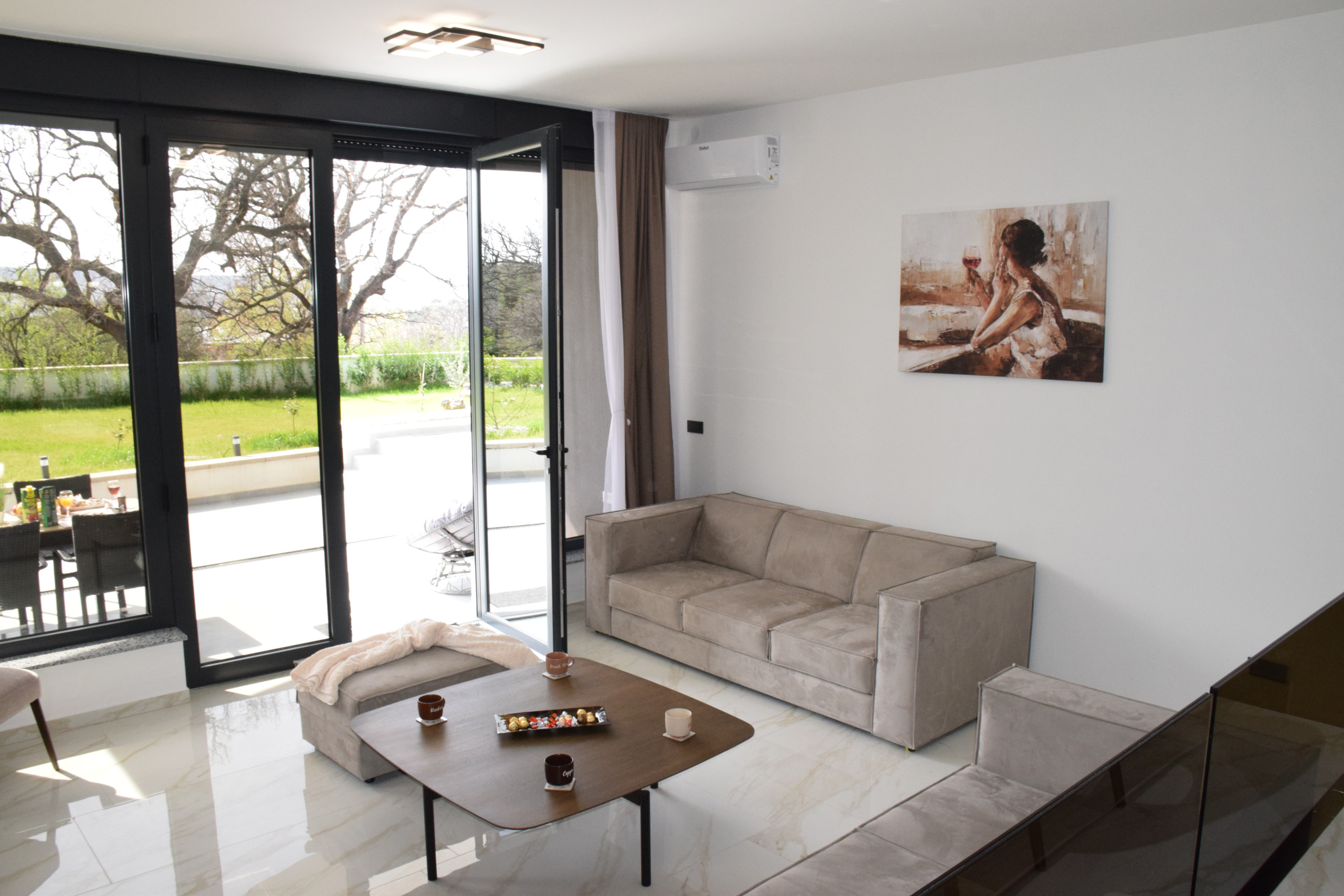 Apartament Senti z wspólnym, podgrzewanym basenem to luksusowy, całkowicie nowy apartament, przestronny i elegancko zaprojektowany, oferujący doskonały komfort dla grup do 7 gości.