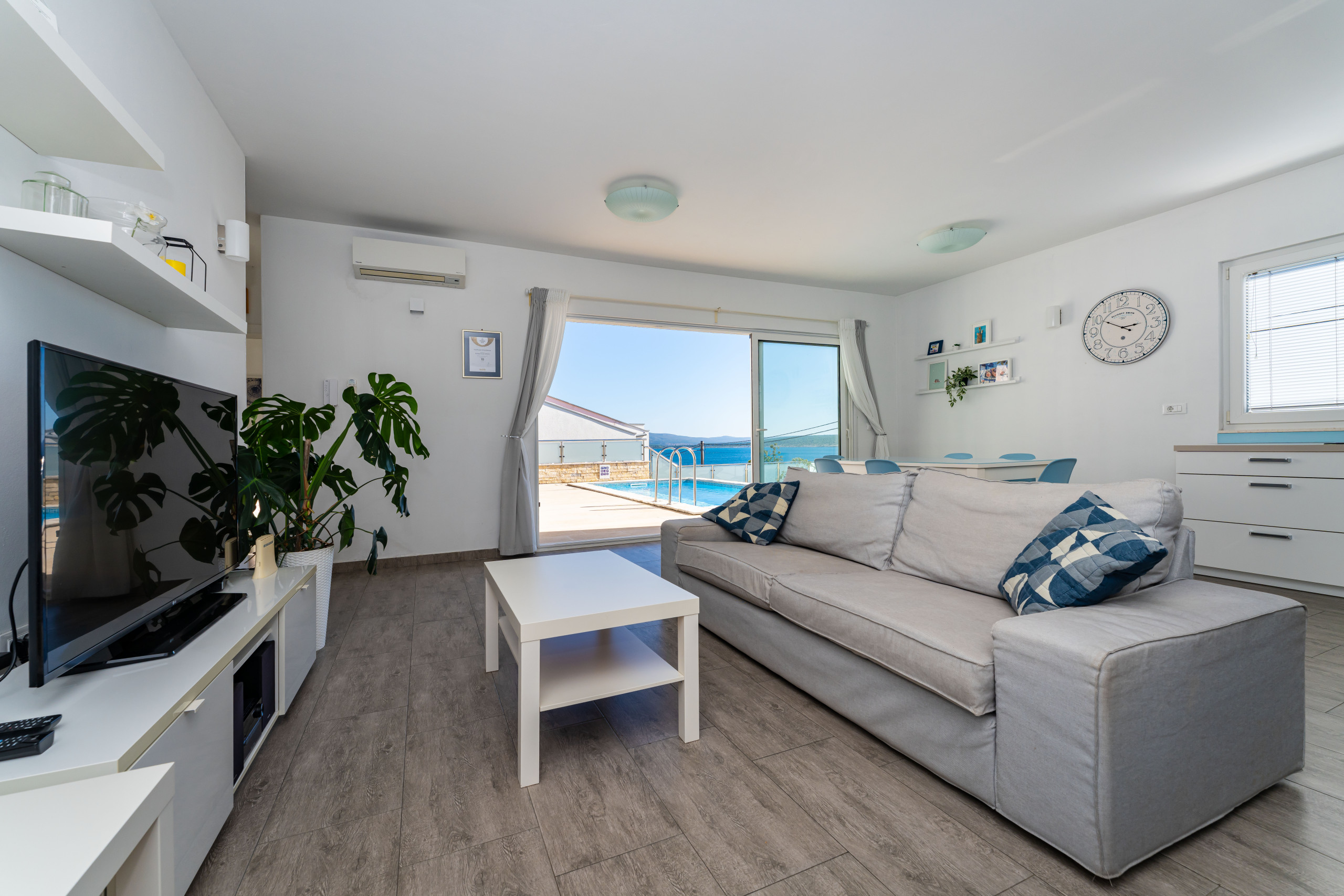 Villa Danica składa się z 2 w pełni wyposażonych apartamentów, z których każdy oferuje nowoczesny salon/jadalnia, w pełni wyposażoną kuchnię, dwie sypialnie i łazienkę. Strefa wypoczynkowa na parterze ma bezpośredni dostęp do 40 m² tarasu z ładnym meblami ogrodowymi, podczas gdy piętro oferuje balkon z niesamowitym widokiem na morze. Piękny ogród oferuje ładny basen, 2 zadaszonych tarasów, urokliwą tawernę i dodatkową łazienkę. Typowy dalmatyński pokój zwany konobą z ładnym rustykalnym drewnianym stołem, otwartym kominkiem, w pełni wyposażoną kuchnią to po prostu idealne miejsce na letnie posiłki!
