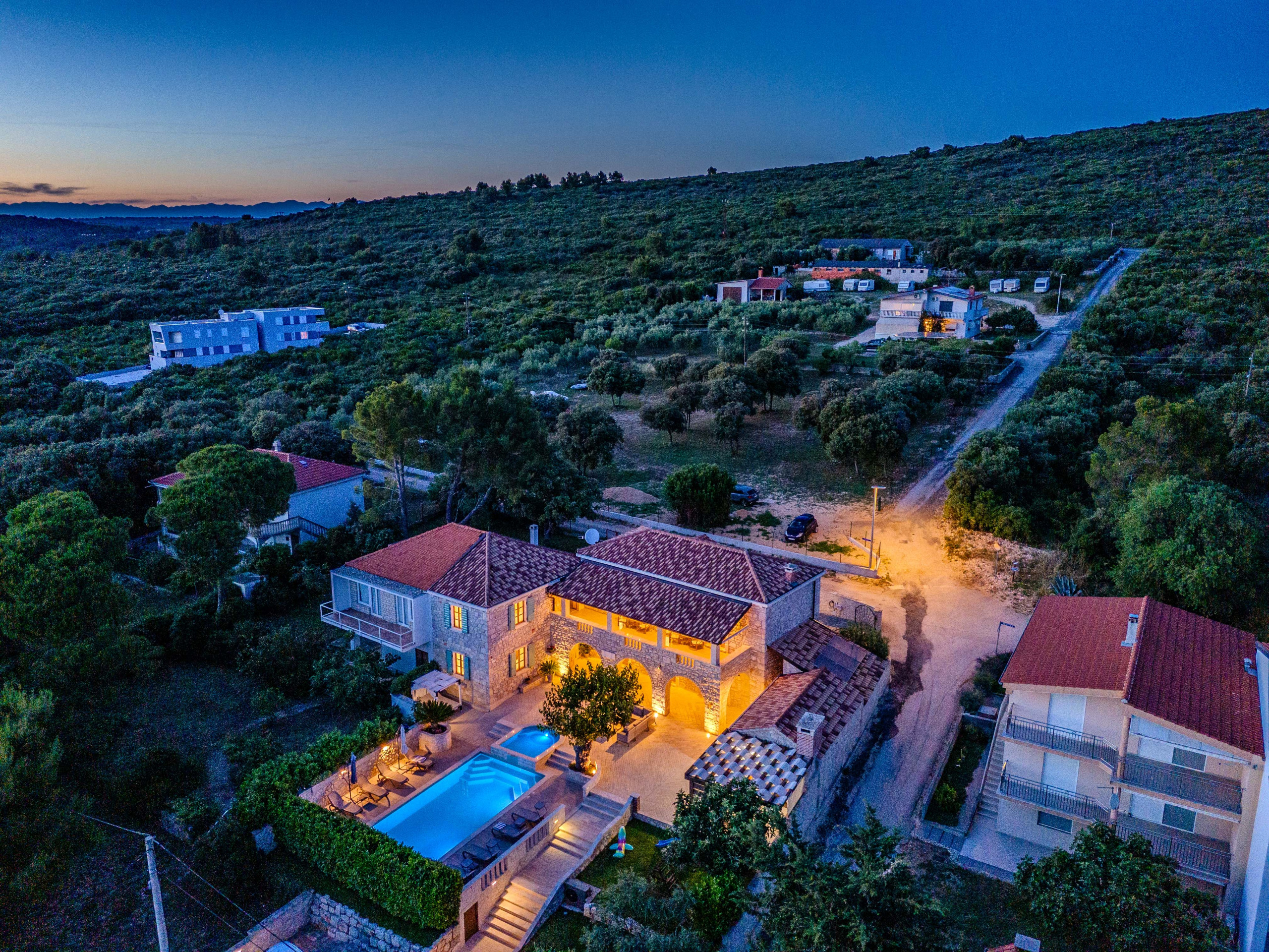Beautiful, spacious 5 bedroom house! Looks exactly like the pictures. The large LR, DR & kitchen combo worked great for having everyone together for meals. We really enjoyed the pool & outdoor patio. It’s a 10 min walk to the harbor area. The general location was very convenient for us to get to Plitvice National Park & Krka National Park.