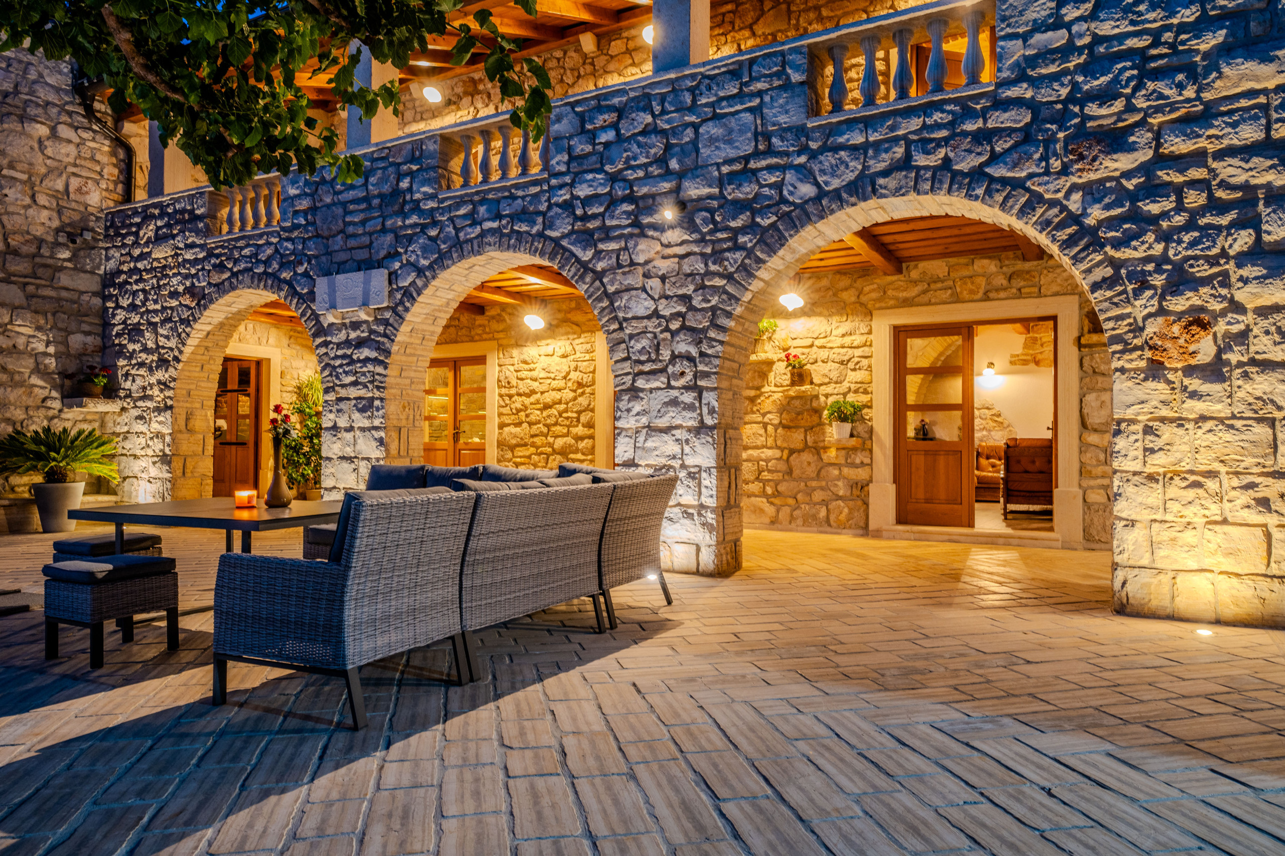 Willa obejmuje w pełni wyposażoną kuchnię, przestronną strefę dzienną z miejscami siedzącymi dla dziesięciu osób oraz przytulny kominek, który dodaje ciepła i uroku. Do relaksu i rekreacji goście mogą korzystać z tenisa stołowego, rowerów, siłowni w pomieszczeniu oraz prywatnej sauny. Łącząc klasyczną rustykalną elegancję z nowoczesnym komfortem, Villa Dumina prezentuje tradycyjną architekturę dalmatyńską na całej powierzchni. Atutem posiadłości jest tradycyjna dalmatyńska tawerna, wyposażona w kamienny kominek i duże przeszklone drzwi — idealne miejsce na wspólne posiłki i niezapomniane wieczory.