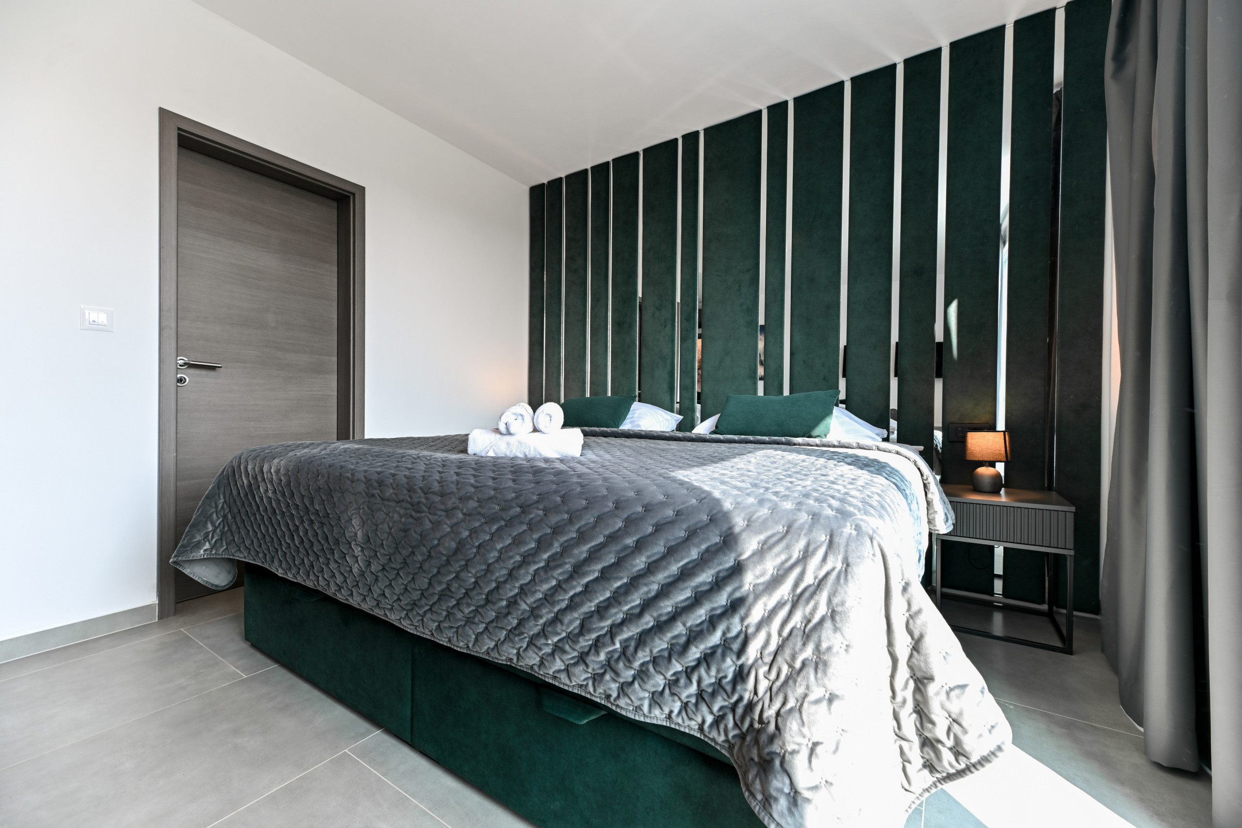 Modernly designed interior consists of 3 lovely air-conditioned bedrooms, each with its own en-suite bathroom, a spacious and bright living/dining area, a fully equipped open-plan kitchen and an additional toilet. Balcony located on the upper floor provides great panoramic views of the Adriatic Sea and Velebit mountain range. Outside, there is a courtyard fenced by high walls which provides total privacy and features your own swimming pool, sun loungers, barbecue facilities, and a nice covered terrace ideal for dining in the open. Enough private parking space is secured for the guests, as well as a fast Wi-Fi connection.