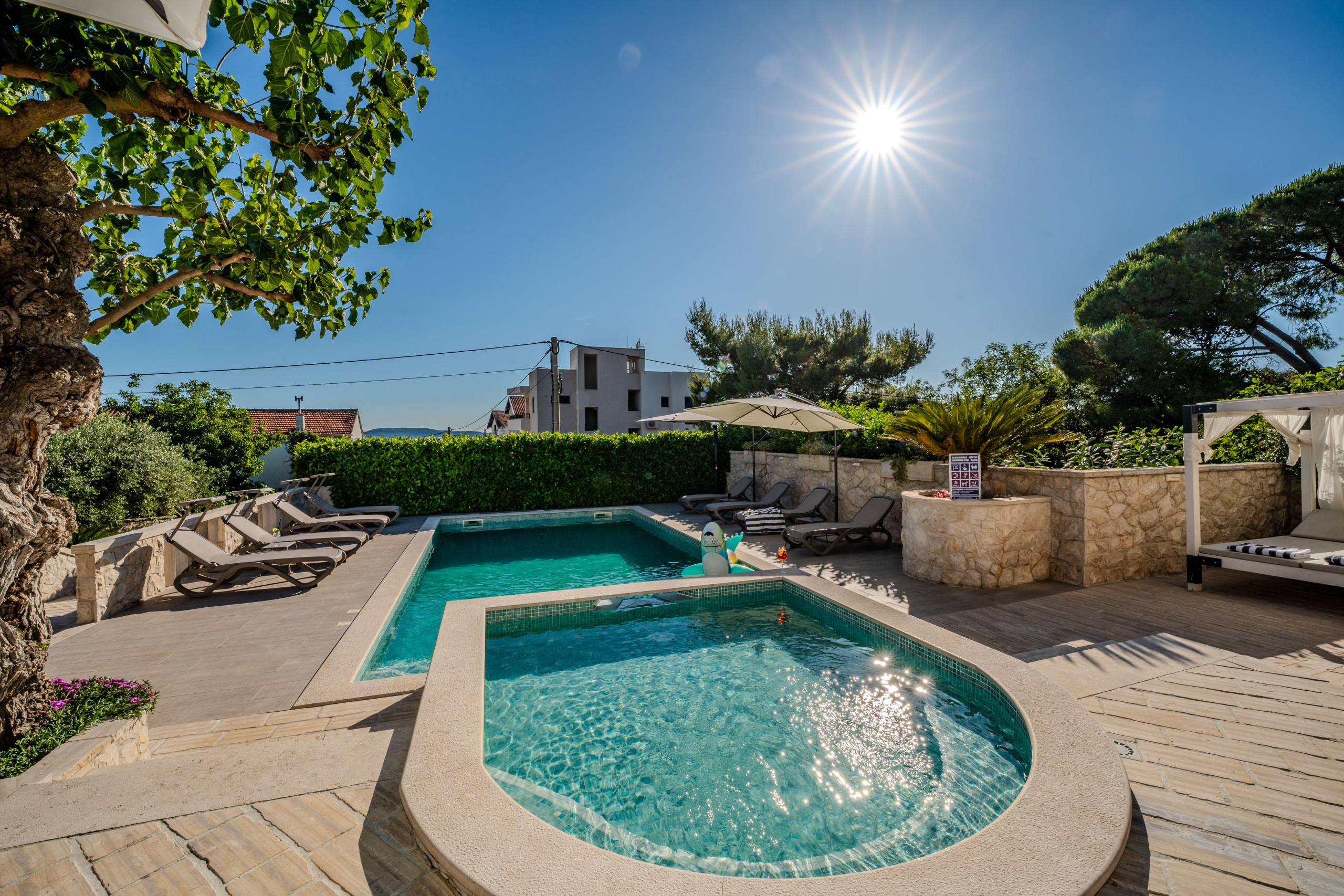 Beautiful, spacious 5 bedroom house! Looks exactly like the pictures. The large LR, DR & kitchen combo worked great for having everyone together for meals. We really enjoyed the pool & outdoor patio. It’s a 10 min walk to the harbor area. The general location was very convenient for us to get to Plitvice National Park & Krka National Park.